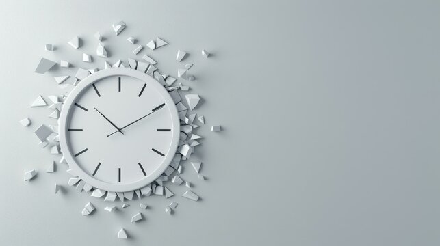 Explore the fleeting nature of time as a clock shatters into fragments, symbolizing the concept of passing away.