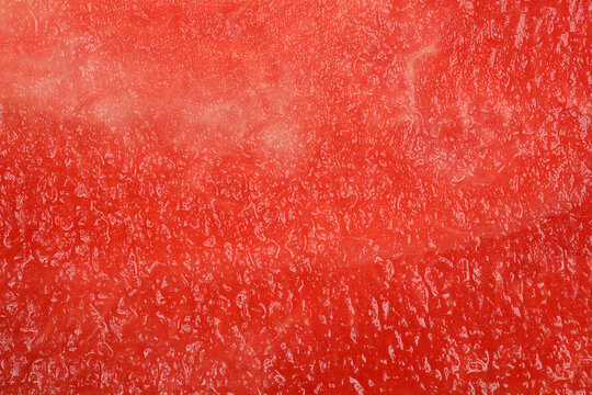 A macro shot reveals the vibrant red and textured flesh of a ripe watermelon