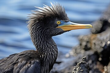 Flightless Cormorant: A Unique Bird of the Galapagos Islands Surrounded by Serene Waters