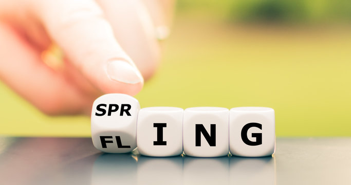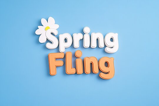 Colorful spring-themed text with a daisy on a light blue background, suitable for seasonal promotions