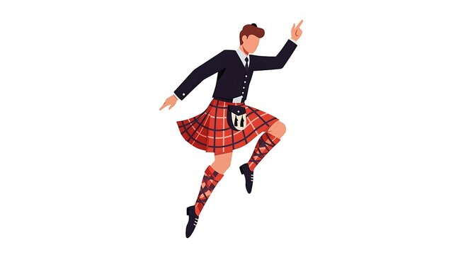 Dynamic portrayal of a highland dancer performing a celebratory scottish fling