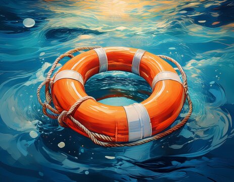 Orange lifebuoy floating on a sunny water surface, ensuring safety during holidays