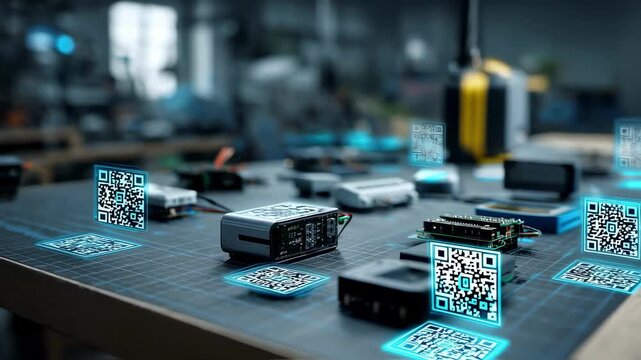 Floating Cubes with QR Code in Futuristic Abstract Background