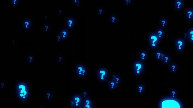 rotating question mark particle animation, floating question marks with fade effect, 3D question marks chroma key background, animated question mark particles 4K loop,
