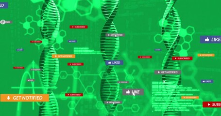 Upon central DNA helix suspending, badges sliding in and labels morphing, visualizing data growth