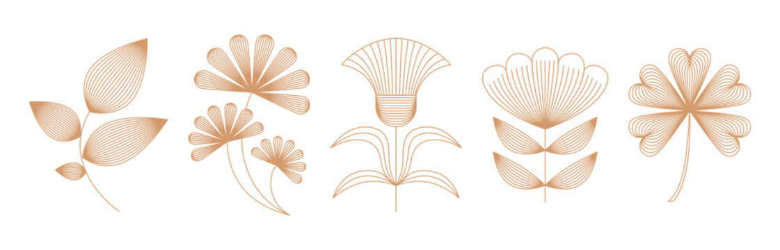Vector design elements and simple illustrations in simple linear style, packaging template and stickers, minimal designs for golden foil printing, cards, invitations and prints