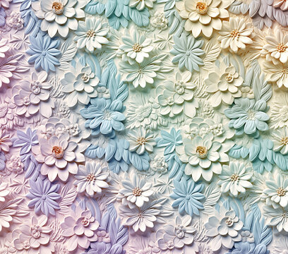 Round wood carving showing a floral design with a large flower in the center surrounded by smaller flowers and leaves