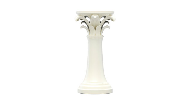 Elegant white pedestal with ornate leaf design, classic column style, suitable for home decor, event display, or floral arrangement, exuding sophisticated and timeless charm