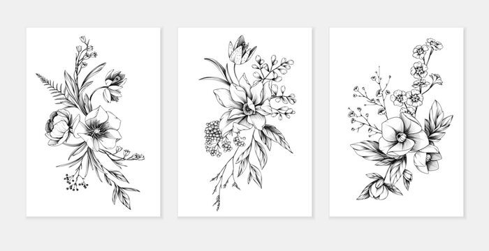 Flower seamless pattern. Repeating geometric leaf. Black floral on white background. Repeated abstract simple for design spring prints. Repeat leaves. Monochrome modern swatch. Vector illustration