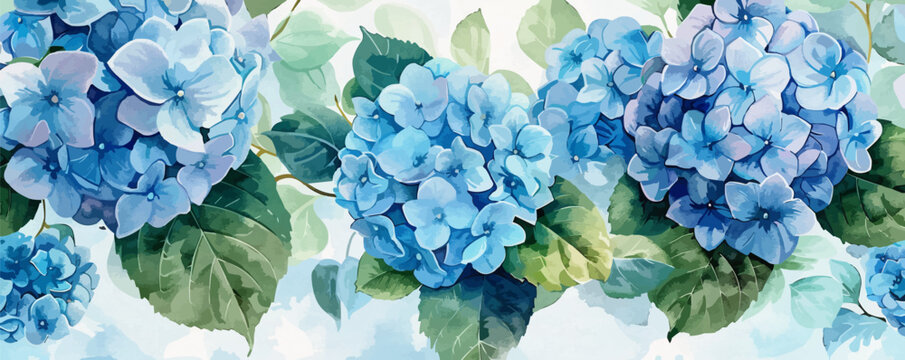 Delicate floral watercolor pattern for textiles and backgrounds, watercolor hydrangea flowers and green leaves, soft colors, boho style on light background, floral vintage wedding style. vector simple