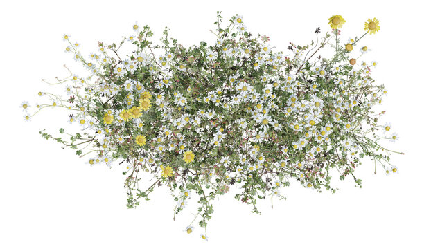 Top view Evergreen colorful flowers and grass field in nature with isolated on transparent background - PNG file, 3D rendering for create and design or etc