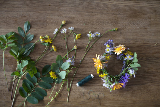 Making a flower wreath
