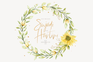hand drawn sun flower summer floral background and wreath design
