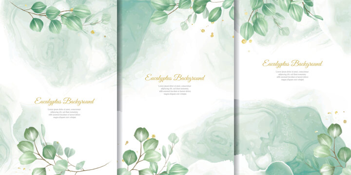 Set of greenery leaf wreaths and bouquets frame with watercolor