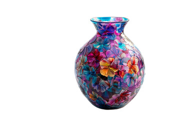 Vibrant mosaic vase with colorful floral pattern cutout png on white background