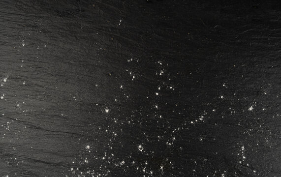 Flour Texture Background, Wheat Flour Pattern with Copy Space, Bakery Banner Mockup, Black Table Plate