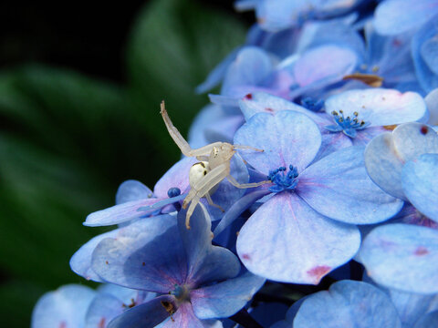 Crab spider mimicking on a yellow flower against black