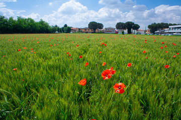red poppy flowerd on the summer meadow