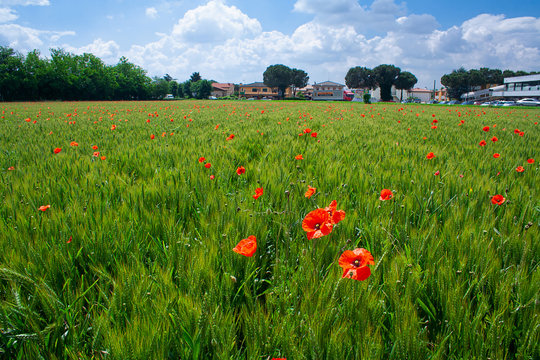 poppy flowerd on s green summer meadow