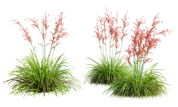 Tropical plant purple flower fence bush green shrub tree isolated on white background with clipping path.