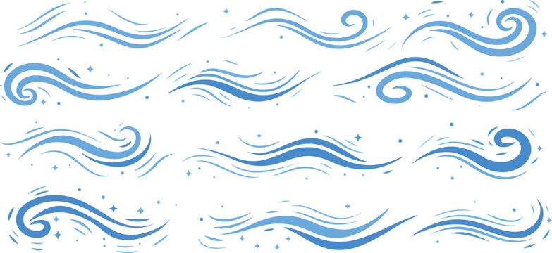 Abstract image featuring flowing blue, yellow, and orange wavy lines that overlap and intertwine. The design is set on a clean white background, representing fluidity, movement, and modern design