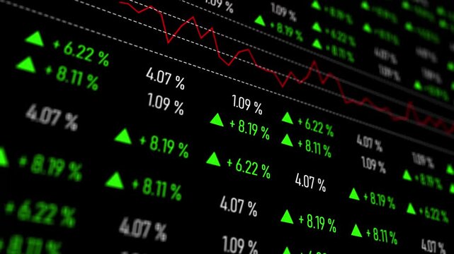 Stock market graph with fluctuating red and blue lines showing financial data and trends digital screen, financial chart with red and blue lines showing market trends digital screen, digital stock