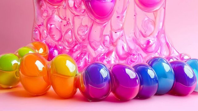 surreal and psychedelic fluctuating 3d bubbles animation, purple and colorful