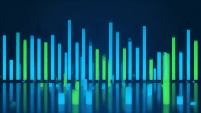 Dynamic 3D graph illustrating fluctuating market trends, showcasing growth and decline patterns over time.