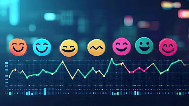 A visual representation of mood tracking through emojis aligned with fluctuating graphs, ideal for UX design, data storytelling, or behavioral research.