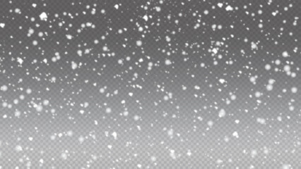 Falling snow overlay with a transparent background. Realistic winter blizzard effect, white snowflakes texture for photo and video editing. Abstract weather pattern, isolated graphic element.