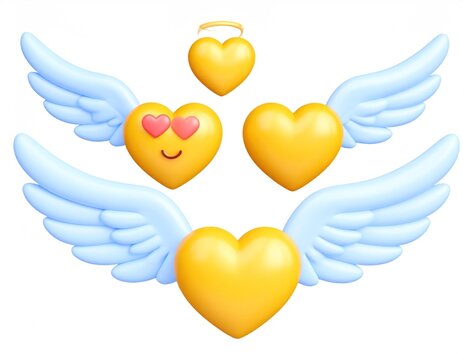 Floating Yellow Heart Emojis With Blue Wings Representing Love and Affection