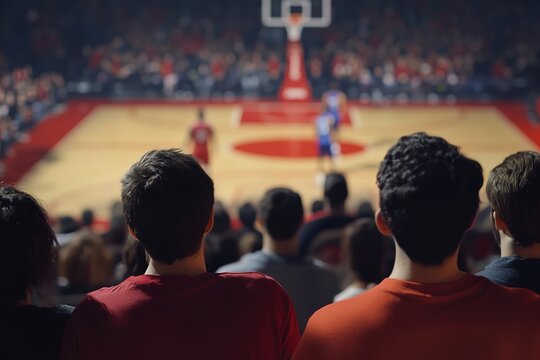 Close-up view of empty stadium seats facing a basketball court, creating a sense of anticipation and excitement. Empty Stadium, Silent Stands
