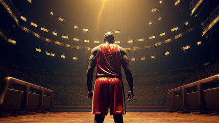 3D image of a basketball player standing on the sidelines Flashing lights ready to compete