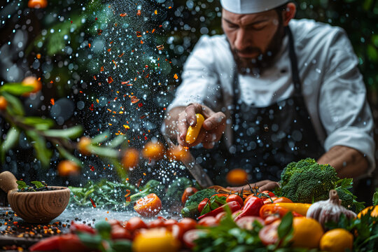 A chef designing a gourmet dish using only local ingredients. Concept of culinary creativity. Generative Ai.