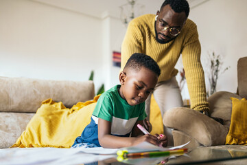 Father and child bonding on father's day at home