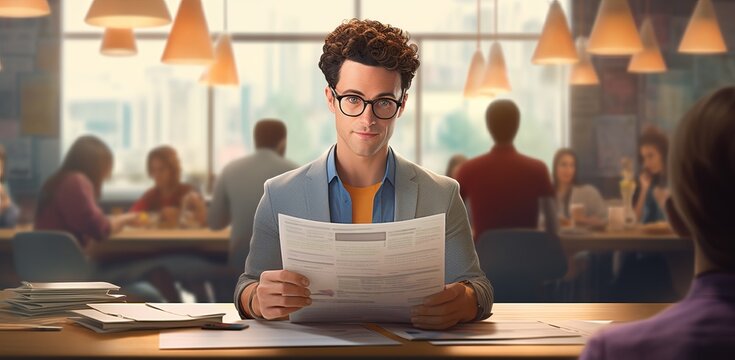 Focused Man Reading Newspaper Inspiring Knowledge Templates