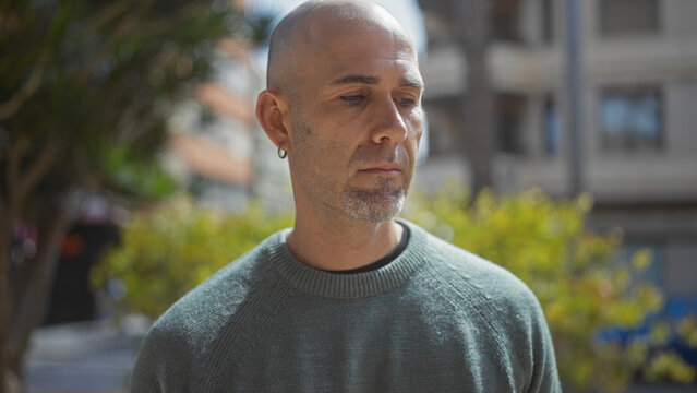 Focused glance. Male looks at camera isolate. Man looks handsome and cool. Guy concentrated focused looking forward. Closeup
