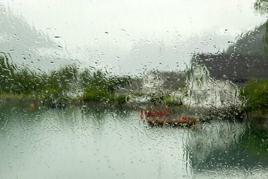 Window transparent blurred foggy glass with condensated water drops monochrome background. Vibrant freshness simplicity texture, season mood image