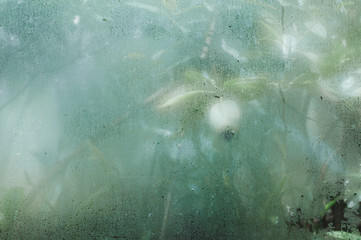 Closeup on fogged blurry glass textured background.