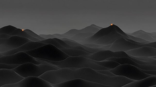 Abstract Landscape Depicting Dark Rolling Hills and Distant Illumination