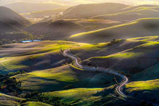 Glowing Sunshine on Rolling Green Hills from View