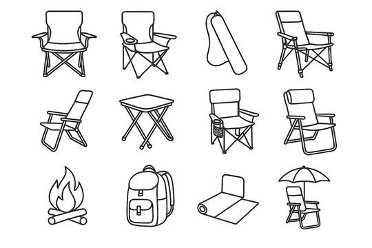 Legs icon bag gear camping vector cup stool carrying icons cushion shade