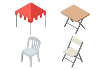 all kind different type of Set of camping chair vector silhouette