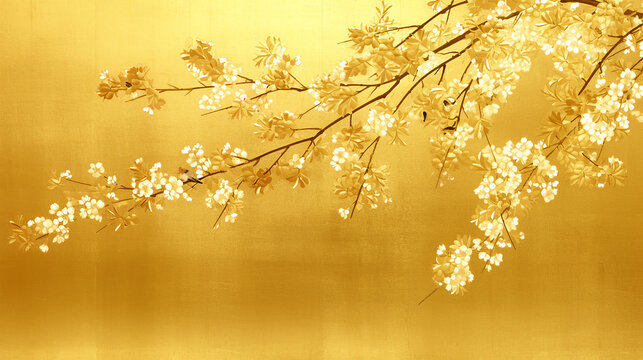 Japan, Japanese pattern, art, folding screen picture, gold, wabi, rust, Japanese spirit, Japanese painting, ink painting, ink painting, classic, ancient art, nightingale, bird, plant, vase, flower,