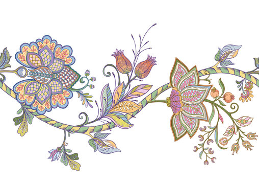 Colorful Kashubian floral embroidery, Polish folk art style, intricate and traditional, flat vector illustration