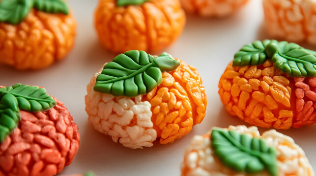 Chocolate Pumpkin Treats with Orange Fondant Decorations Displayed