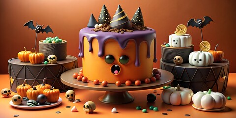 Halloween pumpkin cake with glowing fondant eyes, whimsical holiday treat