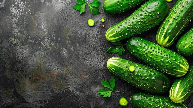 Various healthy foods arranged on dark slate background, top view. Use it for articles or blogs about healthy breakfast recipes.