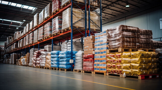 Fresh cucumbers and colorful bell peppers in crates at a modern food distribution warehouse