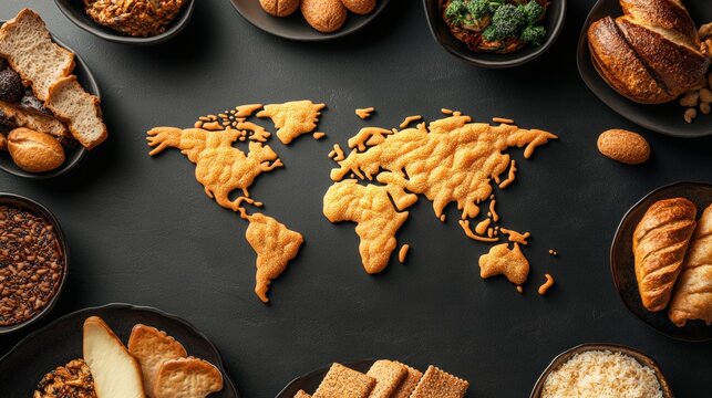Earthly Feast: The globe transformed into a colorful culinary landscape, a vibrant display of healthy food against the backdrop of the cosmos.